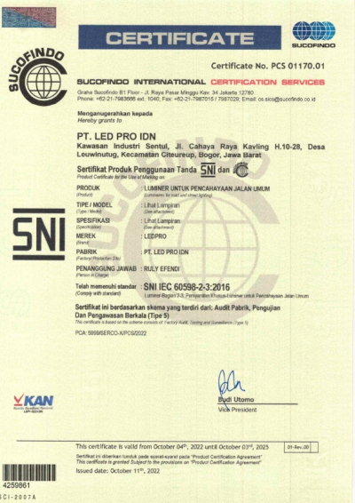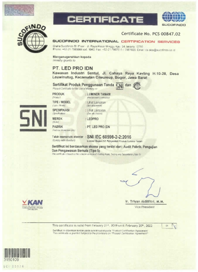 Nov - Mendapatkan sertifikat manufaktur untuk lampu jalan (termasuk alat kontrol)