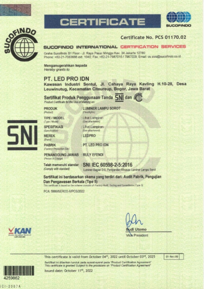 Dec - Mendapatkan sertifikasi KS untuk lampu LED recessed (Indoor)