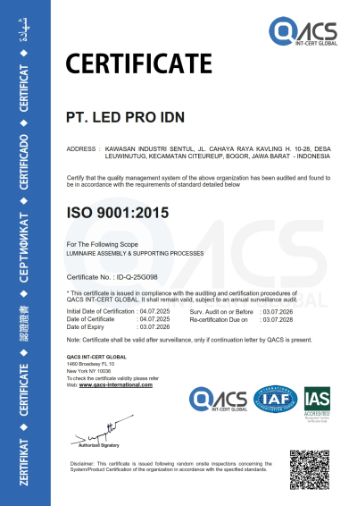 Jun - Mendapatkan sertifikat manufaktur untuk lampu jalan (untuk lampu LED)