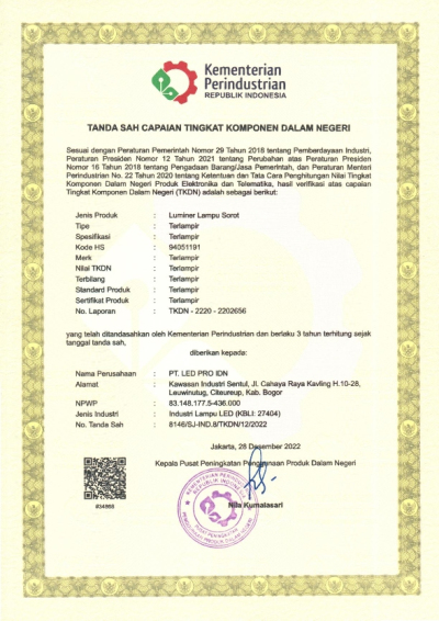 Apr - Mendapatkan sertifikat TKDN